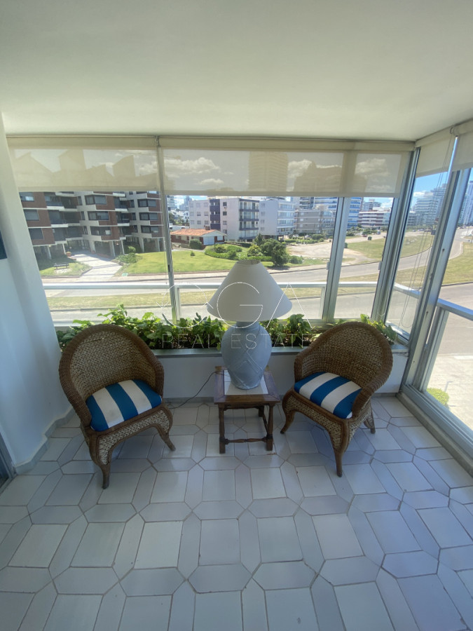 El edificio brinda piscina, servicio de playa, servicio de mucamas y todas las comodidades que caracterizan a este clásico de Punta del Este.