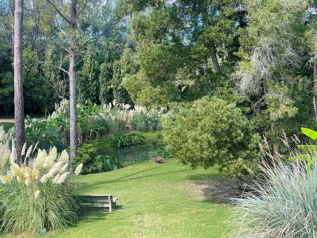 La propiedad se ubica entre distintas especies arbóreas en un entorno idílico con vistas a la laguna y al barrio.