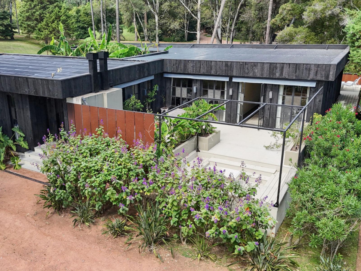 Espectacular casa en barrio cerrado de la Laguna del Sauce de estilo minimalista con acabado exterior en madera Yakisugi.
