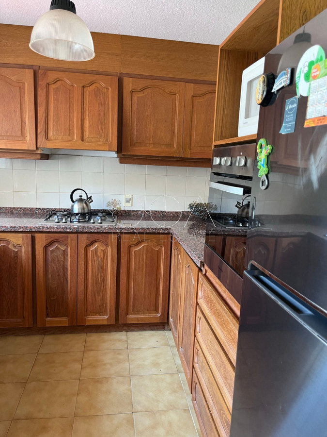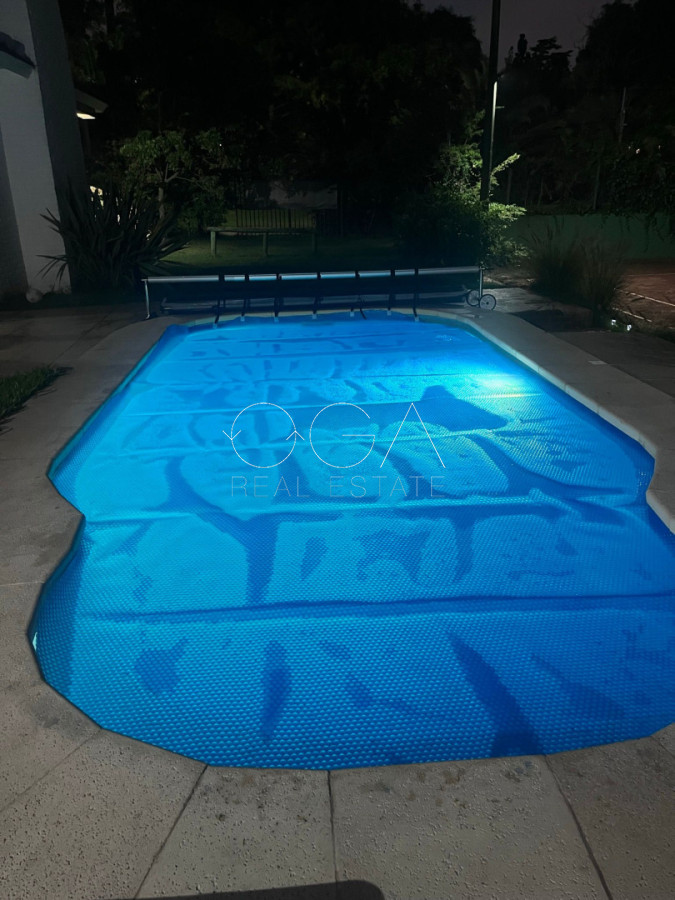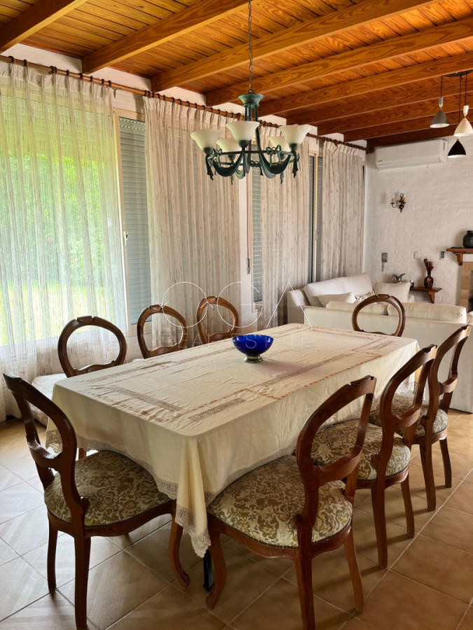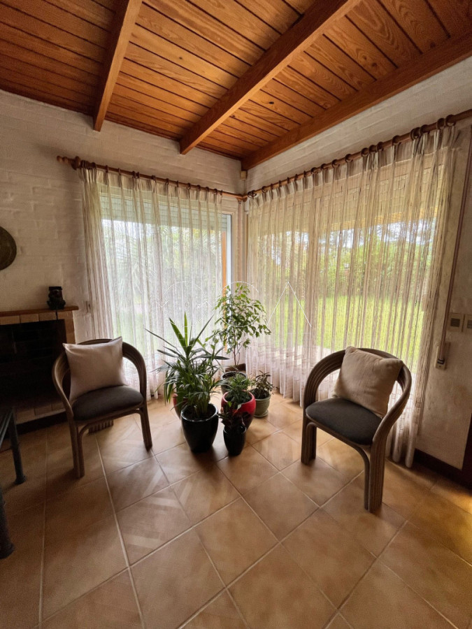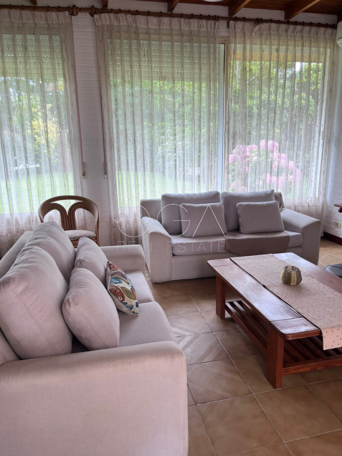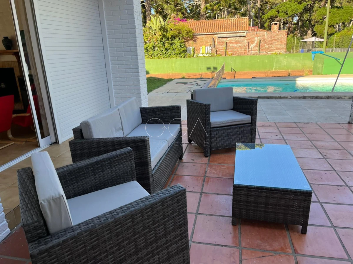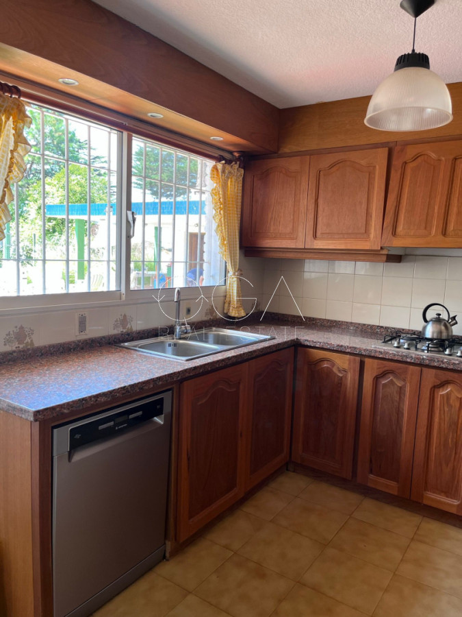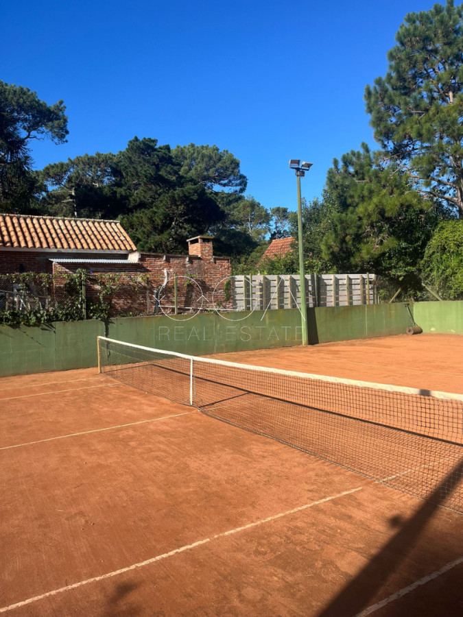 La cocina completa y el amplio living-comedor son el corazón de la casa, también posee barbacoa, piscina y cancha de tenis para el disfrute del verano.