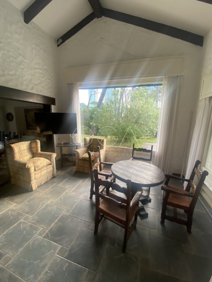 La casa posee gran living comedor con bar y estufa a leña, cocina definida con desayunador y comedor diario, cuenta con 4 amplios dormitorios y 2 baños.