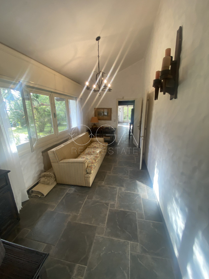 Tiene también una dependencia de servicio, casa de huéspedes, barbacoa y garage para 2 autos.